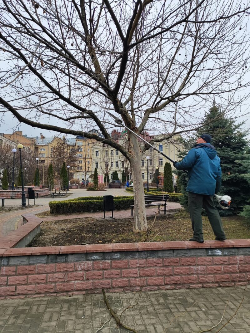 Під час робіт видаляємо сухі та пошкоджені гілки, а також ті, що втратили життєздатність або можуть створювати ризики. Окрему увагу приділяємо ділянкам уздовж пішохідних маршрутів.