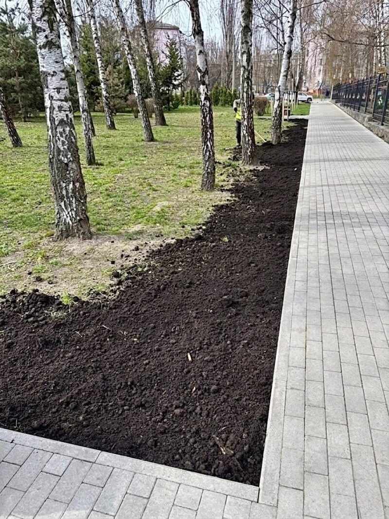 Після зимового періоду окремі ділянки зазнають пошкоджень: ґрунт ущільнюється, з’являються нерівності, а трав’яний покрив відновлюється нерівномірно. Для покращення стану таких територій проводимо комплекс робіт — підсипаємо родючий ґрунт, вирівнюємо поверхню та готуємо основу для формування нового газону.