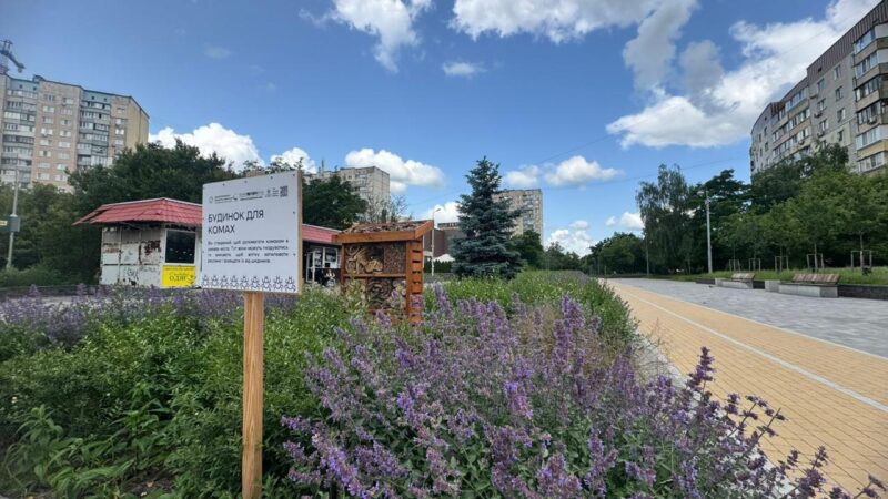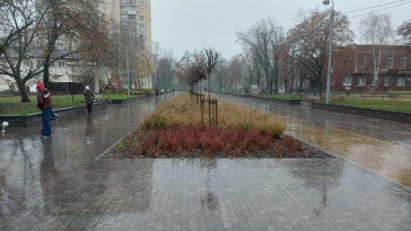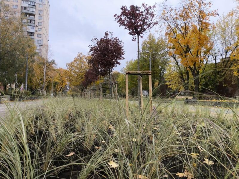 проведено озеленення із висадкою дерев, кущів та облаштуванням газонів;